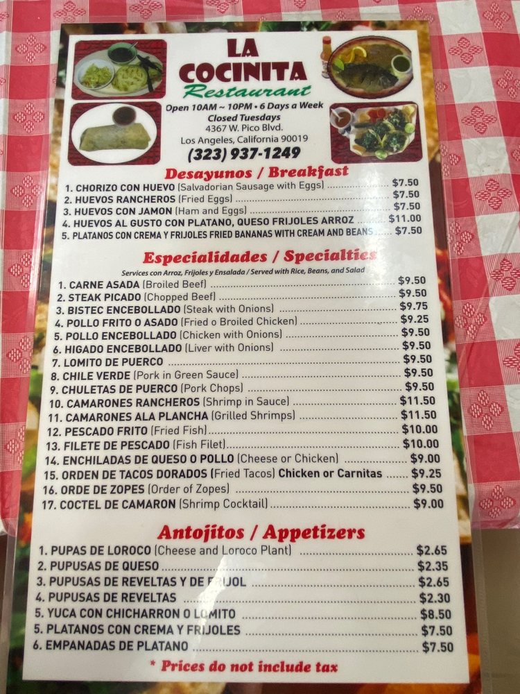 Introducing La Cocinita, a charming Salvadoran eatery nestled at 4379 W Pico Blvd in Los Angeles, CA. This family-owned gem specializes in authentic comfort food inspired by Latin flavors, featuring delightful offerings like hearty pupusas, fried fish plates, and renowned pescado soup. The welcoming atmosphere is enhanced by the engaging sight of chefs in action, creating a community vibe that invites both locals and visitors.